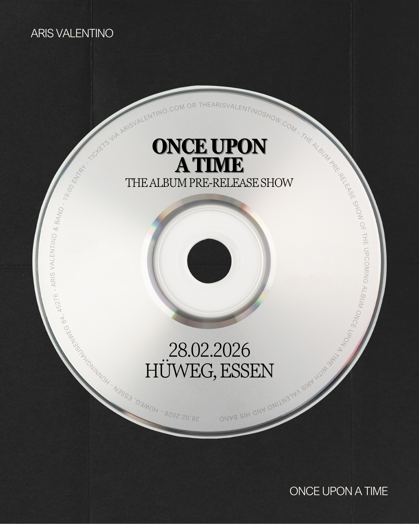 Die Gerüchte sind wahr. Aris Valentino und seine Band sind endlich wieder zurück mit neuer Musik. Und gleich mit einem Album. Once Upon A Time wird erstmals exklusiv am 28.02.2026 im Hüweg in Essen Live präsentiert, mit der Möglichkeit eine Pre-Release Kopie des Albums mitzunehmen. Neue Songs - unveröffentlichtes Material und der erste exklusive Einblick in ein Album, das zu dem Zeitpunkt noch nicht veröffentlicht sein wird.